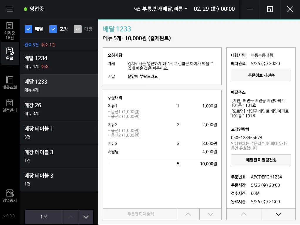 가게 사장님이 사용하시는 배민주문접수 PC 예시화면