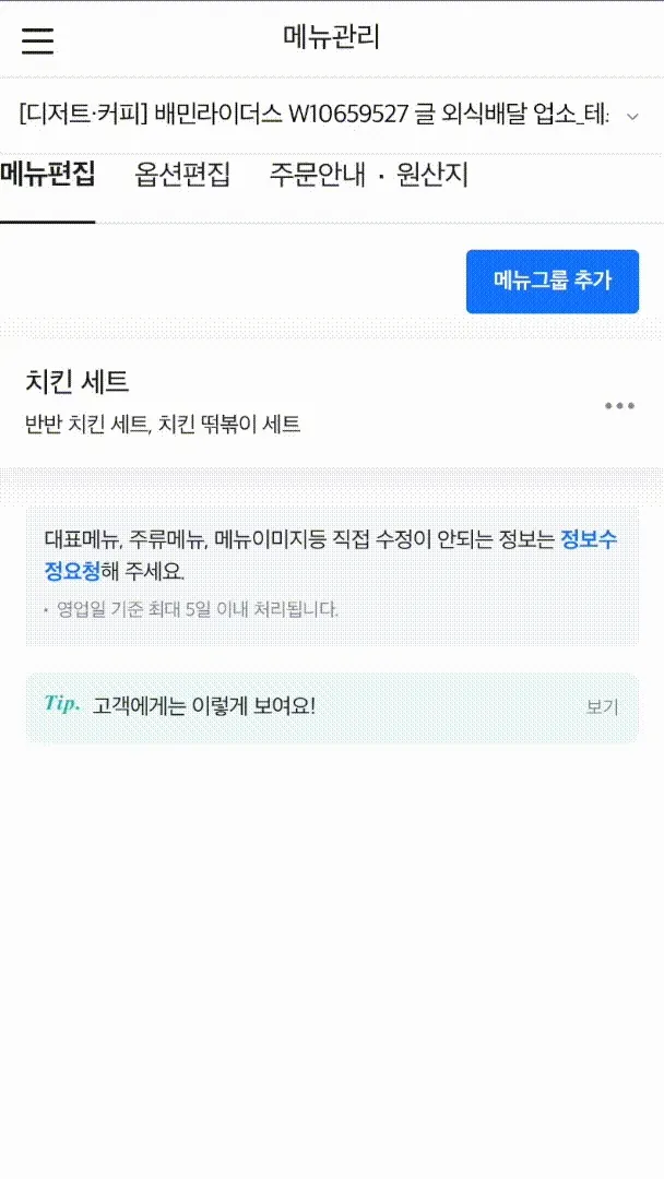 사장님이 메뉴를 어떻게 관리하는지 살펴보도록 할게요~
